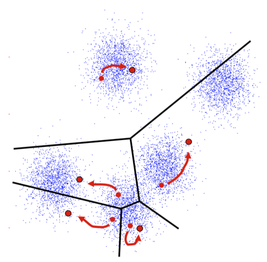 Objective: \(\min_{\mu}\min_{C}\sum_{i=1}^k \sum_{x\in C_i} \lVert x - \mu_i \rVert^2\)
