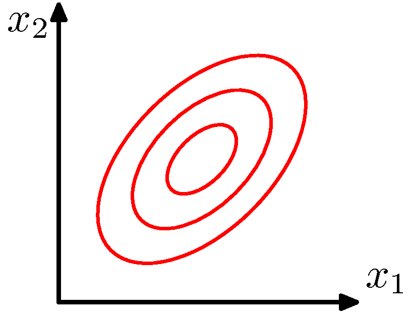 \[P(X=\mathbf{x}_j) = \frac{1}{(2\pi)^{m/2} \|\Sigma\|^{1/2}} \exp\left[-\frac{1}{2}(\mathbf{x}_j - \boldsymbol{\mu})^T \Sigma^{-1} (\mathbf{x}_j - \boldsymbol{\mu})\right]\]